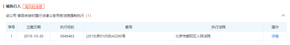 除了北京全时联盟便利店有限公司外,2019年,全时便利店的母公司山海蓝图,也曾被北京市朝阳区人民法院执行。
