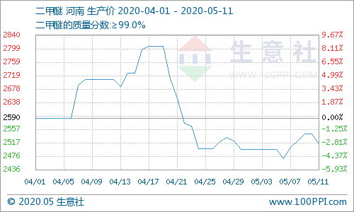 二甲醚:本周国内二甲醚市场成交气氛由弱转强,价格在本周后期逐渐上扬。五一节日期间,二甲醚出货普遍低位,首先,原油方面价格持续下降,导致液化气价格下调从而影响贸易商采购信心,另外,市场存在买涨不买跌心态,价格下调期间,贸易商退市观望情绪较浓。本周国内二甲醚开工约14.82%,较上周下降0.20%。本周贵州天福、河北冀春停车检修,四川隆桥低负荷生产。