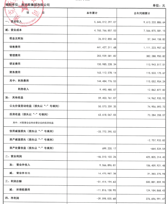 根据奥克斯集团在上清所公布的2020年一季度财务报表,其总营业收入只有56.46亿元,相比去年同期大幅下降41.27%;净利润降低至负数,一季度的净利润共亏损了3960万元。