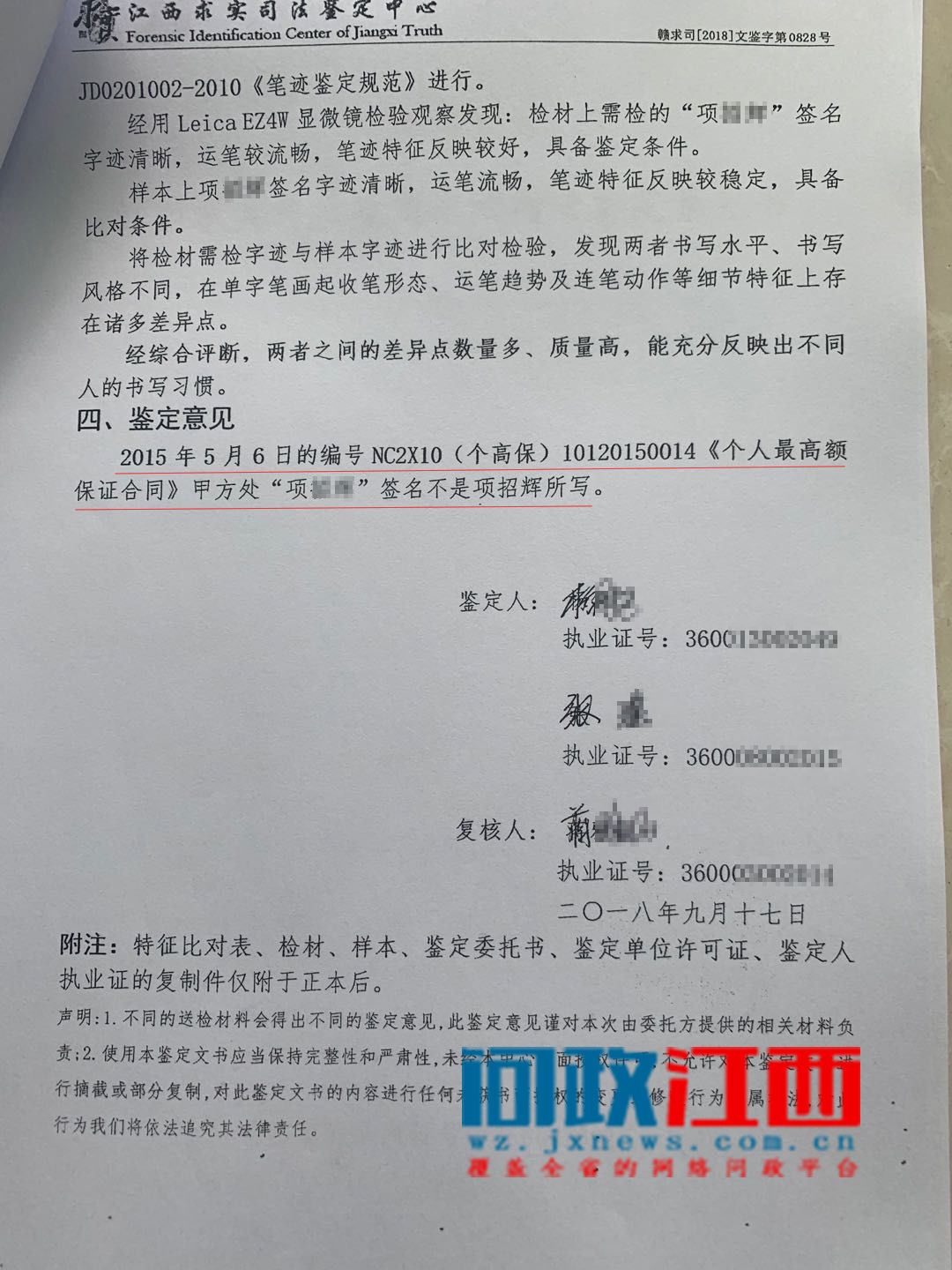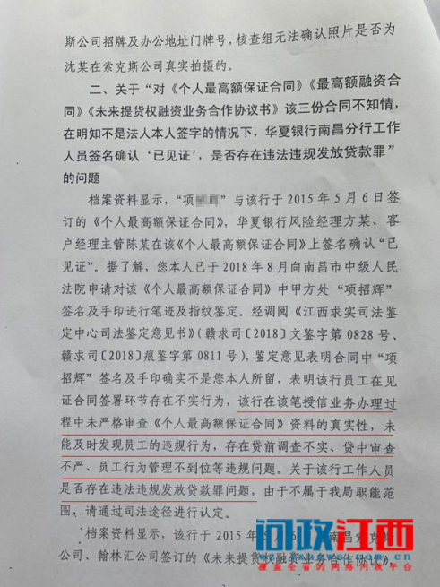 项先生前往法院调取资料,期间他从一份“最高额保证合同书”上发现材料上的签名与自己的签名截然不同,而华夏银行南昌分行工作人员却十分肯定是项先生亲自签名。