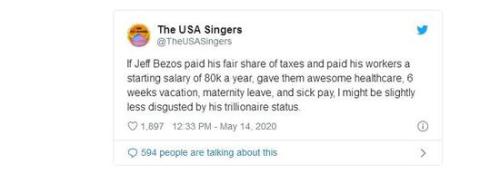 有网友评论:“如果杰夫·贝佐斯支付了应缴的税款,并向他的工人支付一年8万美元的起薪,给了他们令人敬畏的医疗保险、6周假期、产假和带薪病假,我可能对他的万亿富翁身份不那么反感。”