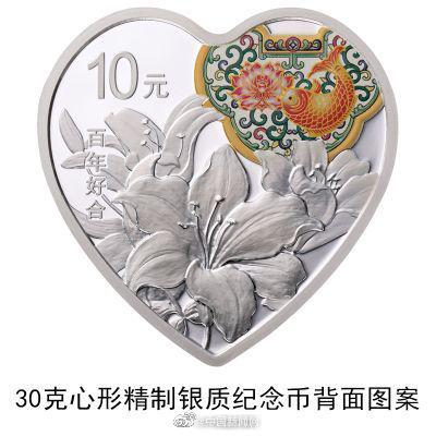 央行520发行心形纪念币 刊“百年好合”字样